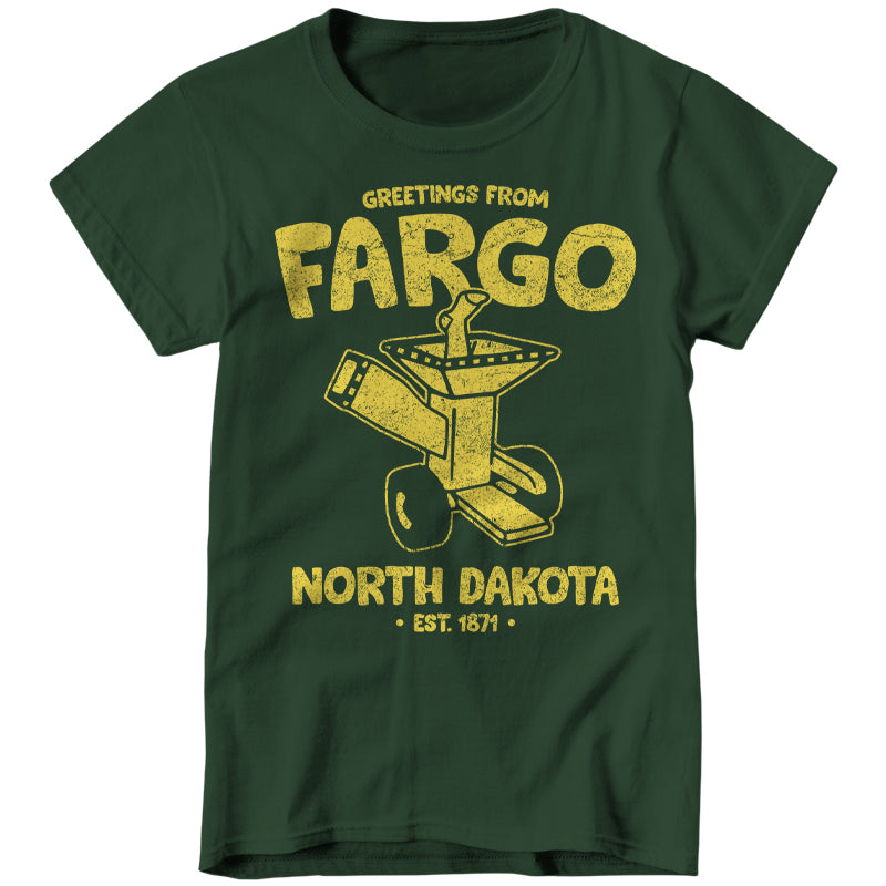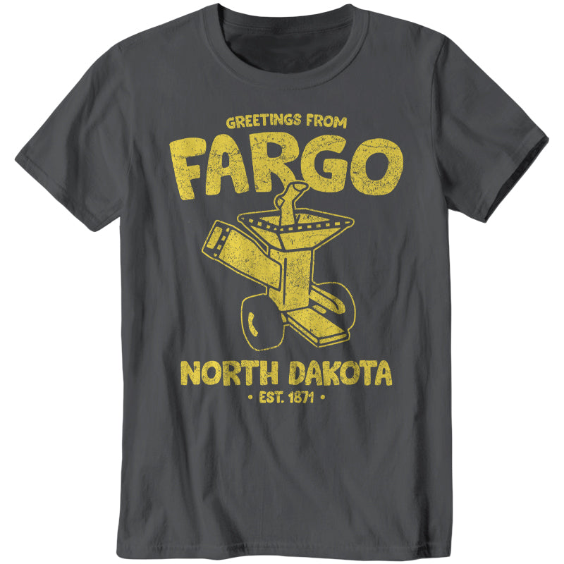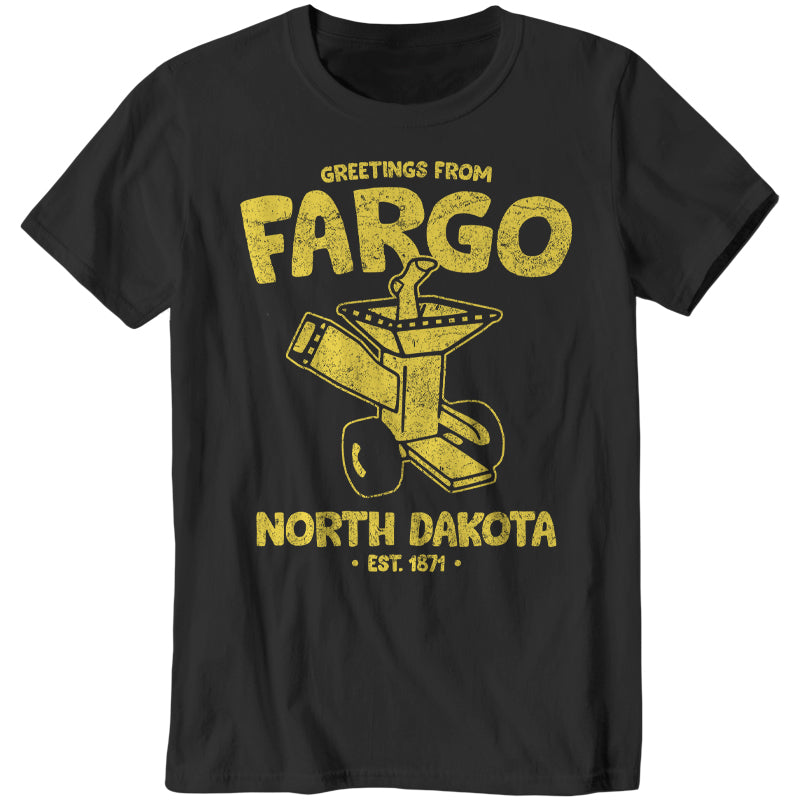Introducing our "Greetings from Fargo" T-shirt, a darkly whimsical nod to the cult classic thriller. This eye-catching design showcases an iconic wood chipper with a leg comically protruding from the top, capturing the film's twisted humor and chilling charm. Perfect for fans of Fargo, this shirt combines a playful aesthetic with a hint of danger, making it a must-have addition to any cinephile's wardrobe. Made from soft, high-quality fabric, it's both comfortable and striking—ideal for showcasing your love for the unexpected!