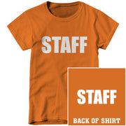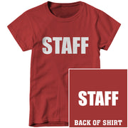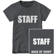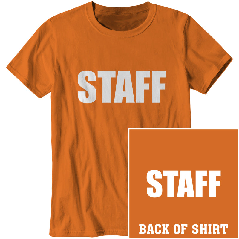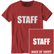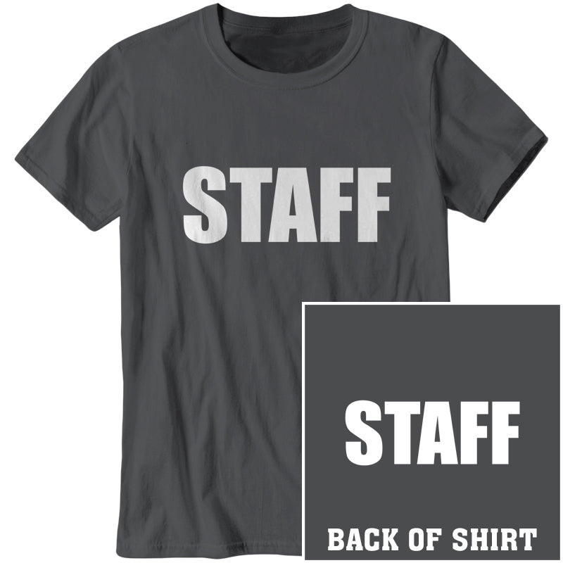 Perfect for companies, events, venues, Halloween parties, conventions, cosplay & costumes! STAFF is printed on the front and back of shirt. Available in assorted colors, styles & sizes!