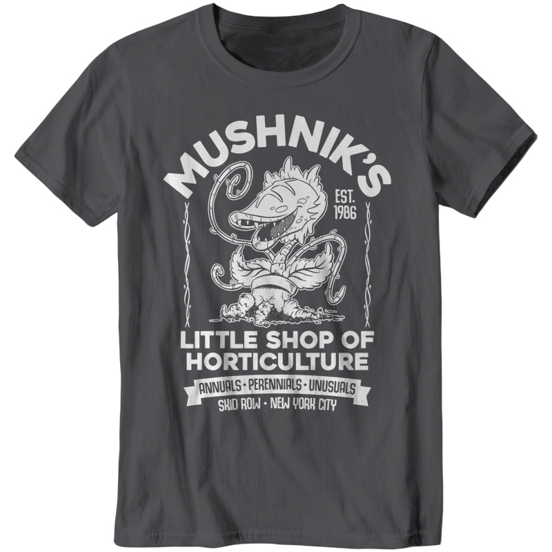 Feed me Seymour! This 100% cotton tee is inspired by the 1986 Musical/Horror Little Shop Of Horrors.