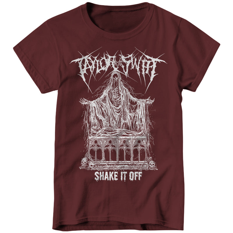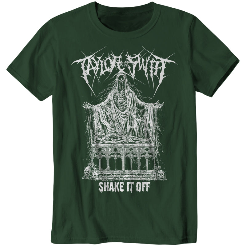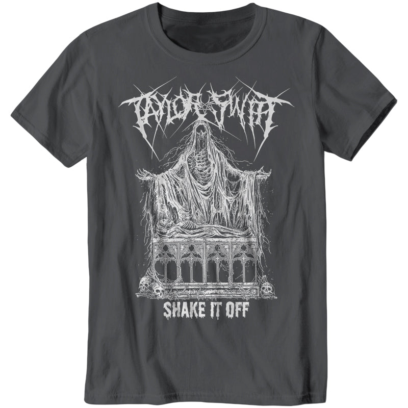 Baby, I'm just gonna shake, shake, shake it off, I shake it off! Listen to Taylor Swift and praise Satan in this Taylor Swift death metal parody t-shirt!